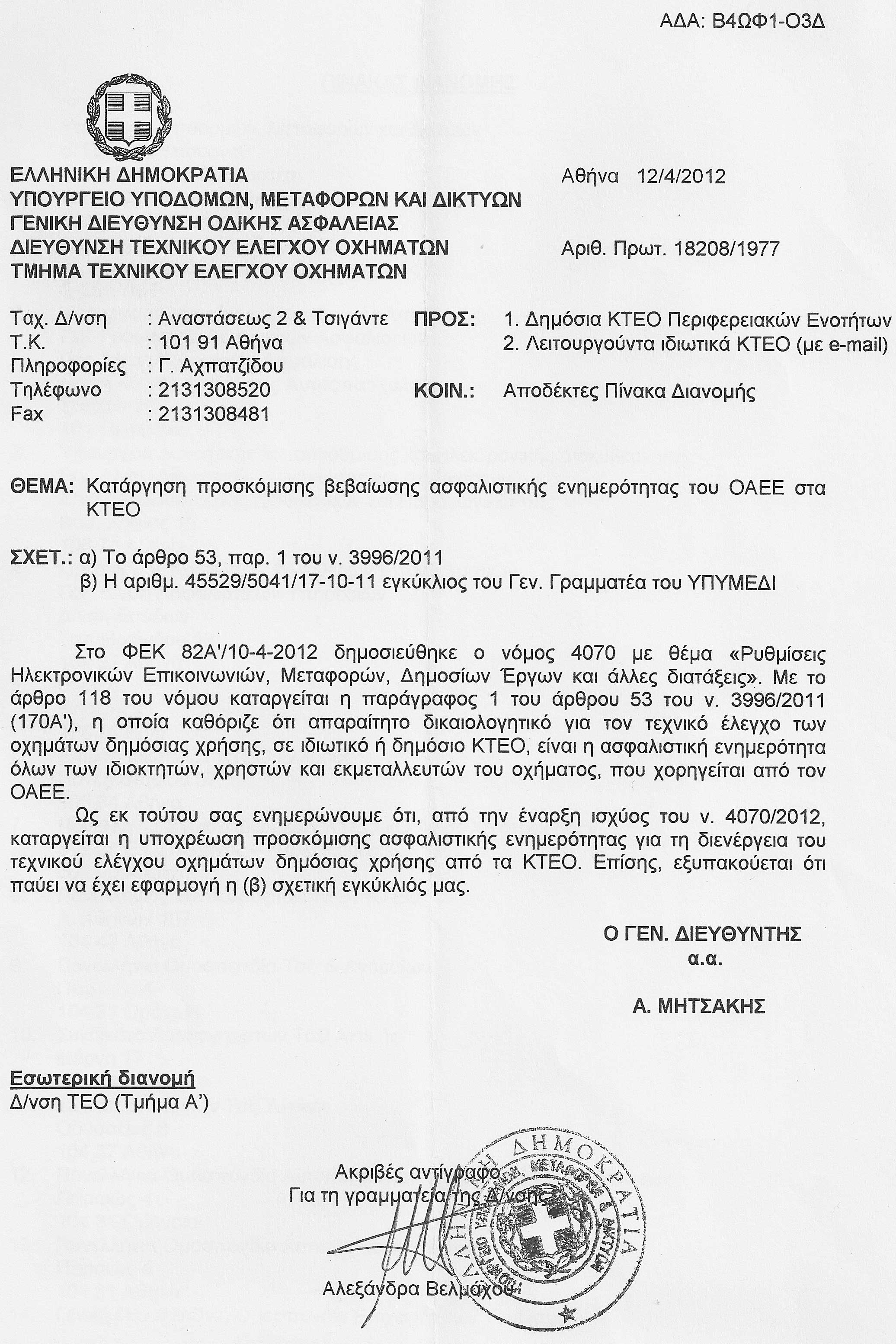 - Κατάργηση βεβαίωση ασφαλιστικής ενημερώτητας πρός τα ΚΤΕΟ